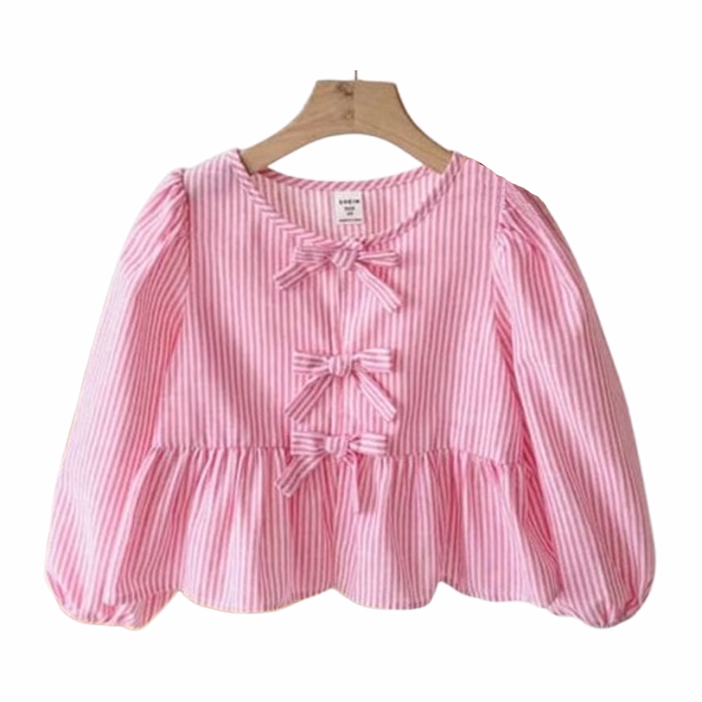 بلوزة اطفال مقلمة فيونكات على الصدر